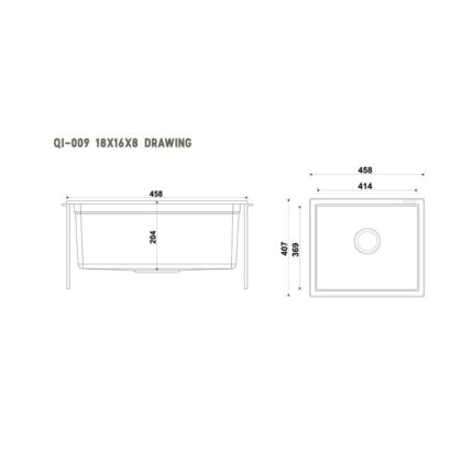 כיור מטבח גרניט בודד דגם QI46 | מידה 46X41 ס"מ