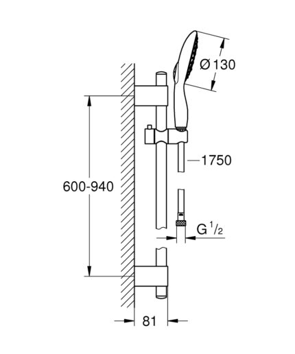 מוט פינוק גרואה קומפלט מצב יחיד | 28975000 של גרואה GROHE