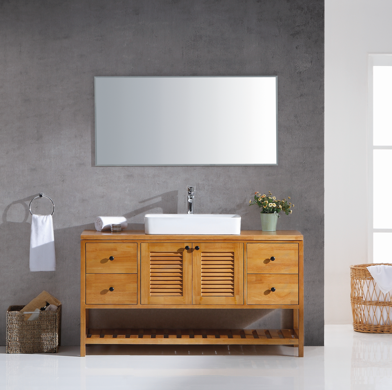 • ארון אמבטיה מעץ אלון