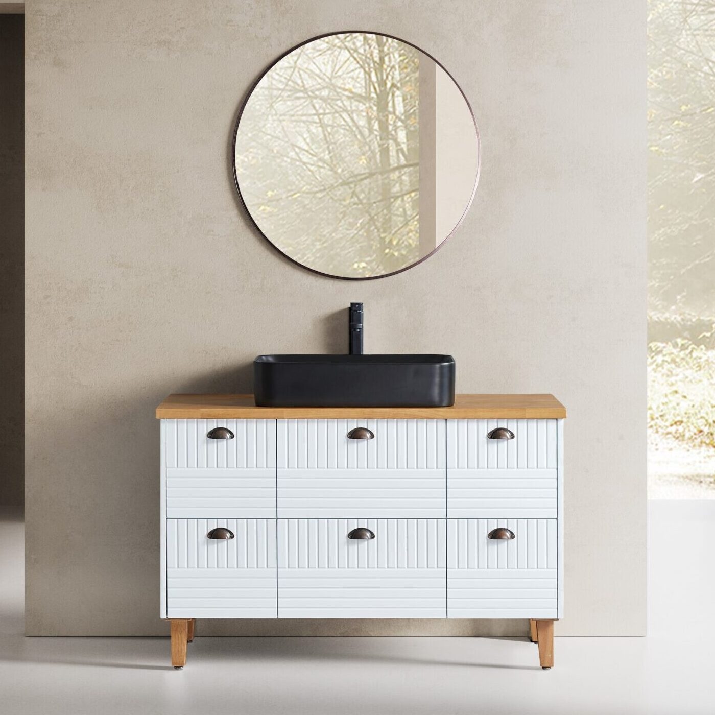 - המחיר כולל :ארון, בוצר מעץ אלון/כיור חרס לבן מבריק עם חור לברז, ומראה מרחפת בלבד