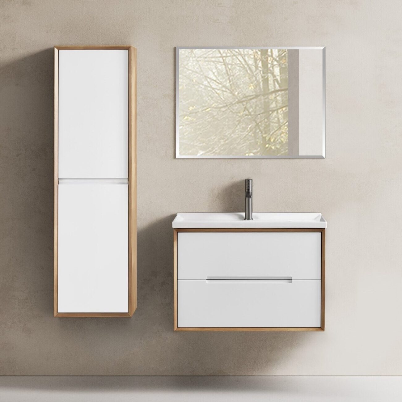 - המחיר כולל :ארון, בוצר מעץ אלון/כיור חרס לבן מבריק עם חור לברז, ומראה מרחפת בלבד
