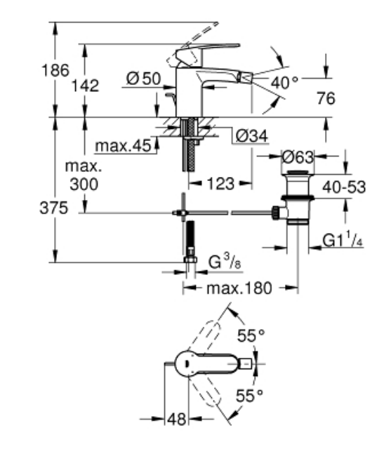 מק"ט: 33565002 קטגוריות: GROHE, ברזים, ברזים לבידה