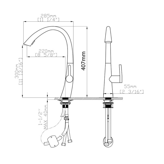• ברז מטבח נשלף 2 מצבי זרימה מסדרת CARLOS