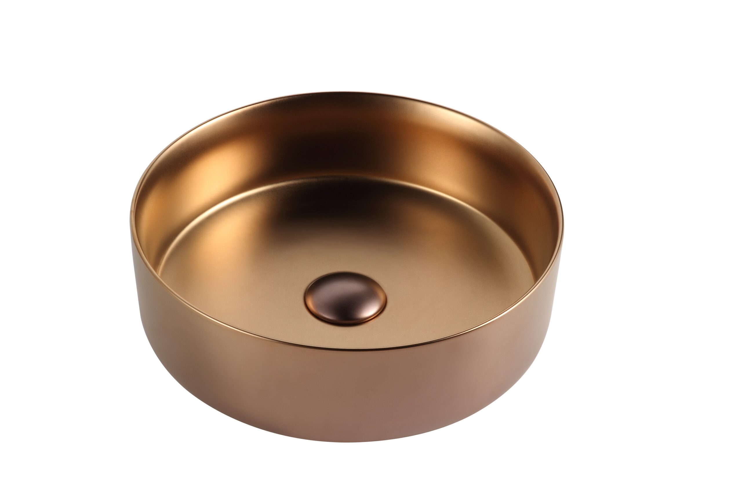 כיור מונח חרס עגול מיוחד | קוטר 36 ס"מ | רוז גולד מט PVD