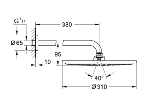 ראש מקלחת גרואה 31 ס"מ + זרוע 38 ס"מ | 26066000 גרואה | GROHE